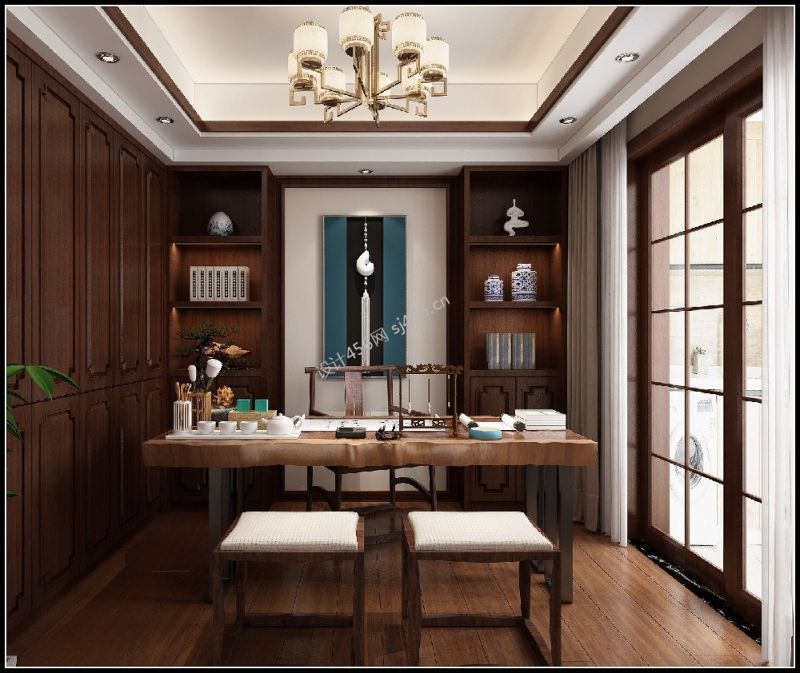 中式500平米中式别墅书房背景墙装修设计图欣赏