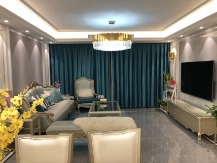 滕州观唐装饰 滕州洋房一楼带院140平方美式风格实景装修效果-滕州原柳娜