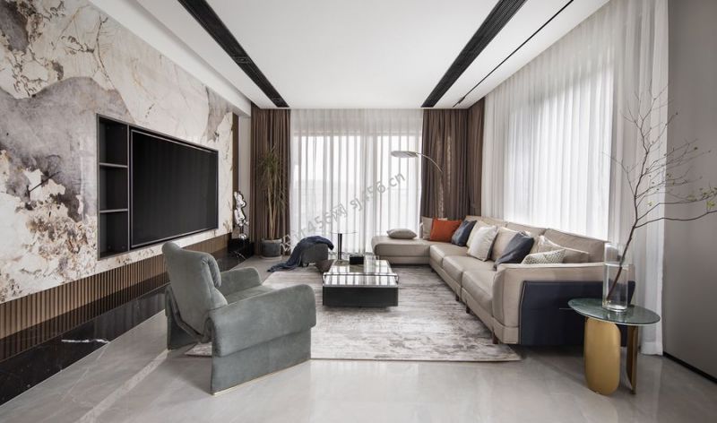 上坤北湖四季132平现代风格三居室装修案例风效果图