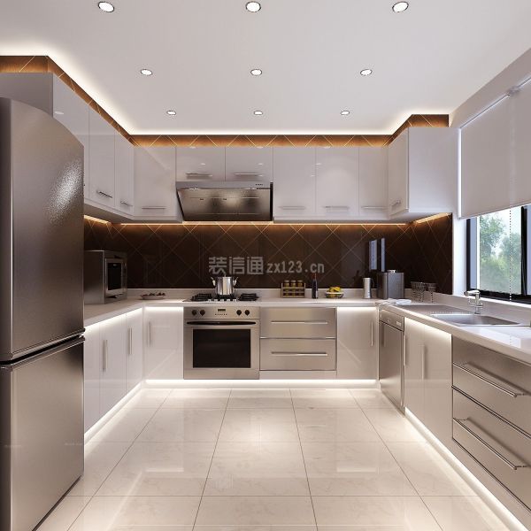 厨房的设计一般分为一字型、L形、O形等,一字型比较适合狭窄面积小的厨房,L形的设计也很适合小户型,是比较普遍又经济的,O形的设计要求厨房面积要足够大,所以要根据自己家的实际面积来进行设计。