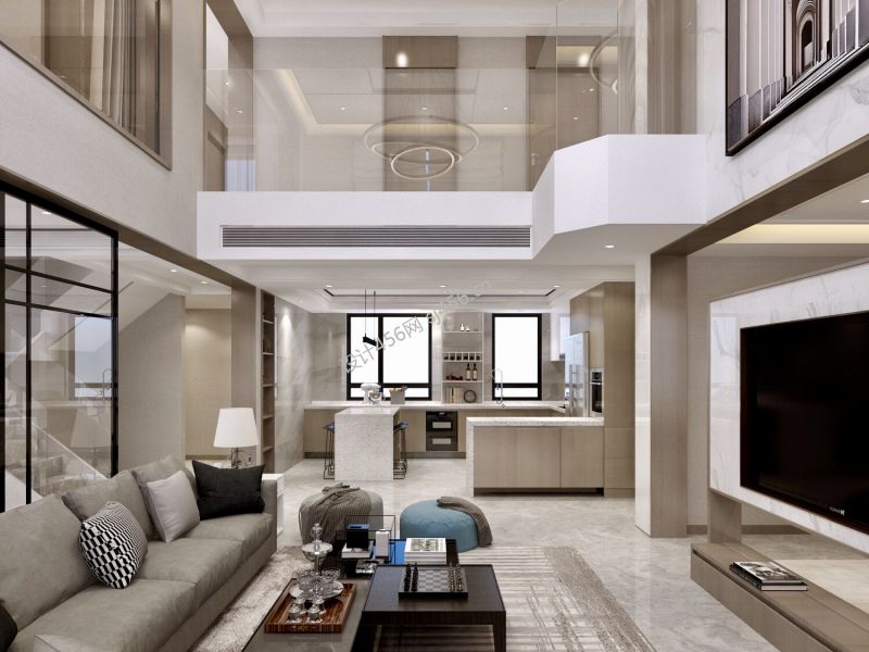 洲际之星三居室180平现代轻奢风格装修案例风效果图