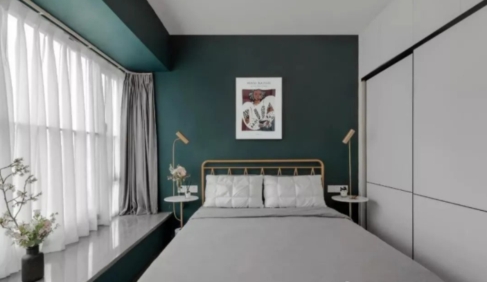 侧边放置衣柜时,一定要注意衣柜与床边的距离,方便开柜门取东西,一般衣柜距离床边至少0.5m,让使用更加方便。