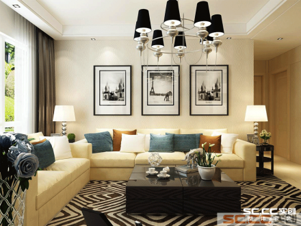 天房彩虹苑英式两居86㎡装修案例风效果图