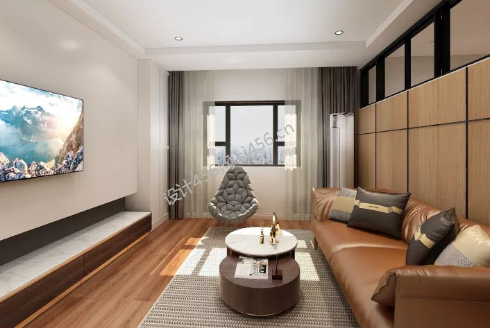 昱和里现代简约风格60平米二居室装修案例风效果图