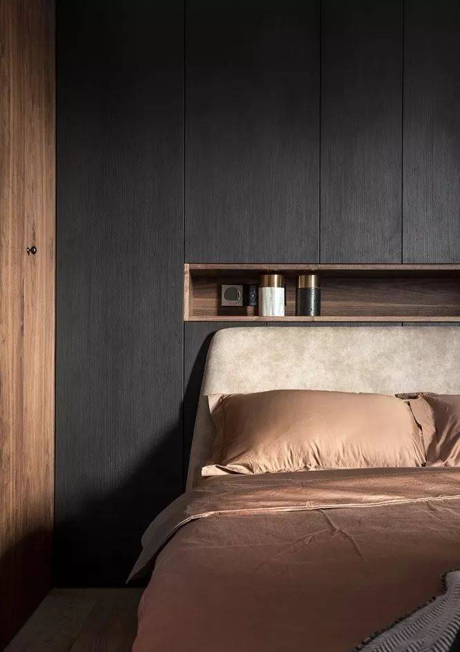 卧室的壁龛,可以完美兼容床头柜的功能,非常适合没有床头柜空间的小户型卧室。但也要注意留白,特别是床头不能填充太满,不然压抑!