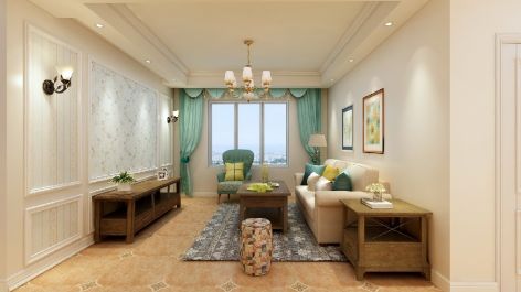 美式田园106平米三居室客厅装修效果图