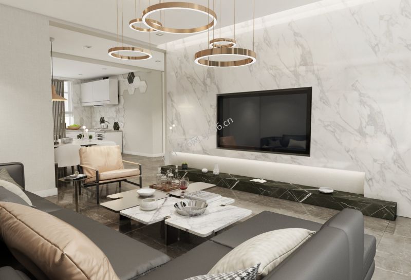 2020简洁现代客厅装修效果图 客厅石材电视背景墙效果图