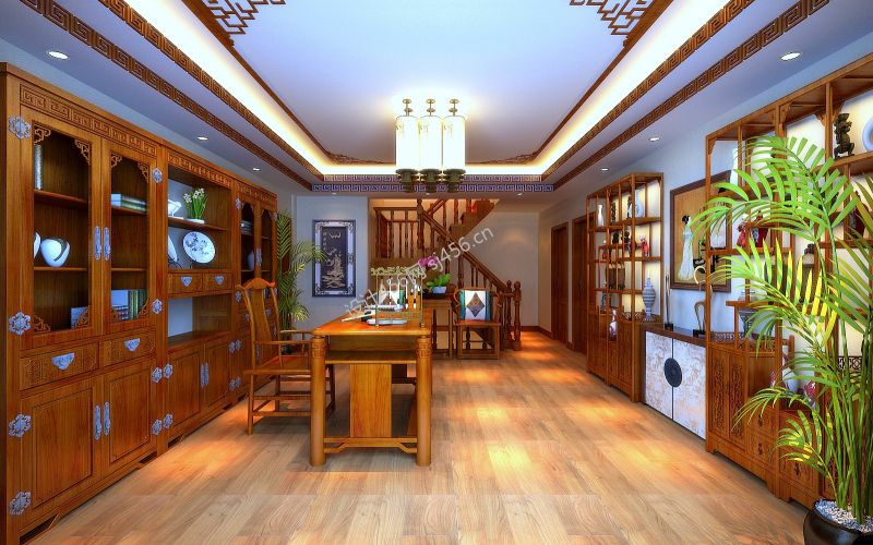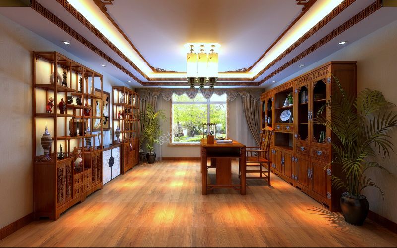 2020别墅中式书房装修效果图 2020书房实木家具装修效果图