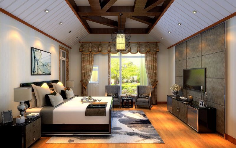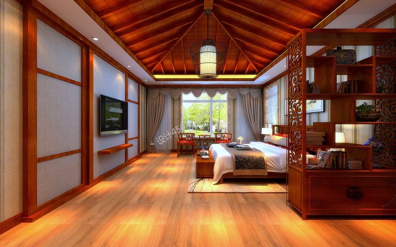 2020新中式别墅卧室装修效果图 卧室吊顶造型效果图