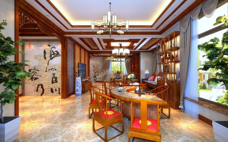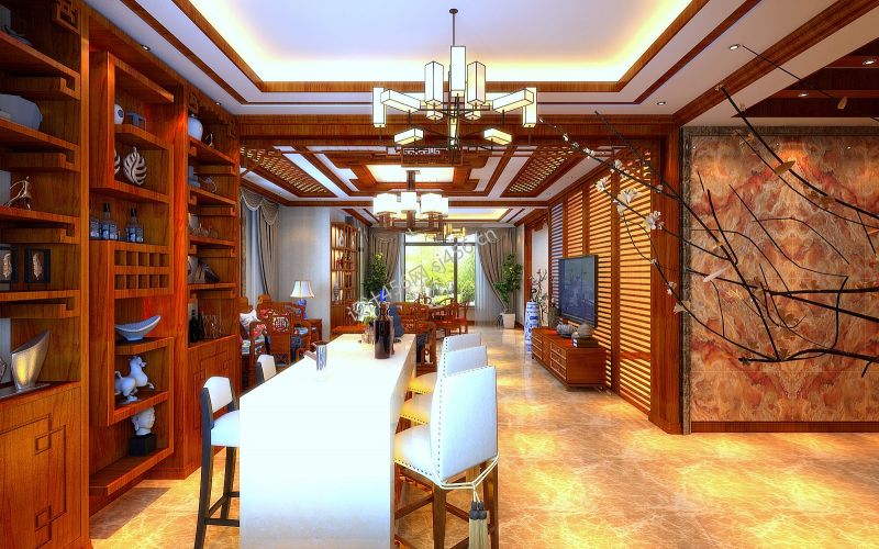 2020古典中式别墅效果图 酒柜吧台装修效果图