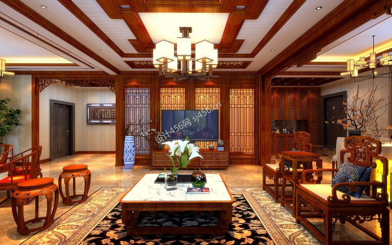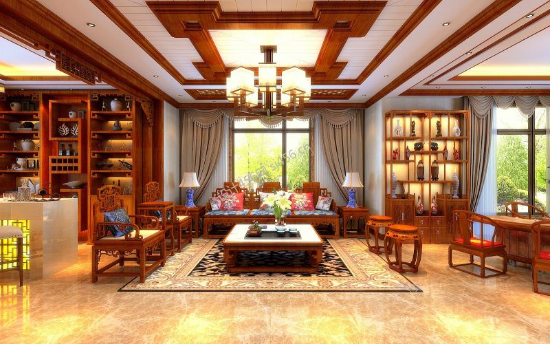 2020中式别墅客厅效果图 2020客厅实木家具装修效果图