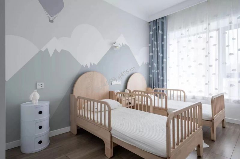 北欧原木风格110平米三居室儿童房背景墙效果图