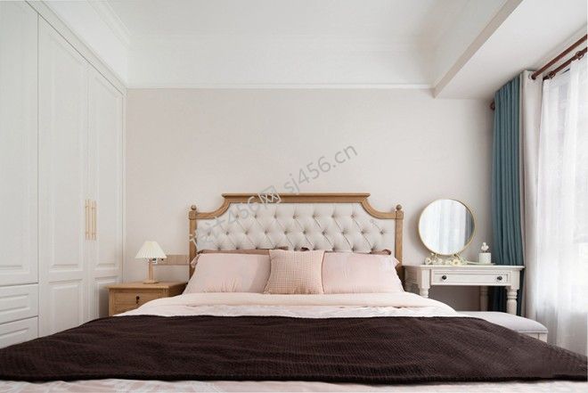 美式风格116平米三居室卧室床效果图