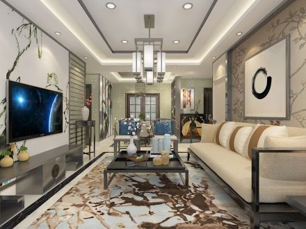 长岛国际88㎡二居室美式风格装修案例风效果图