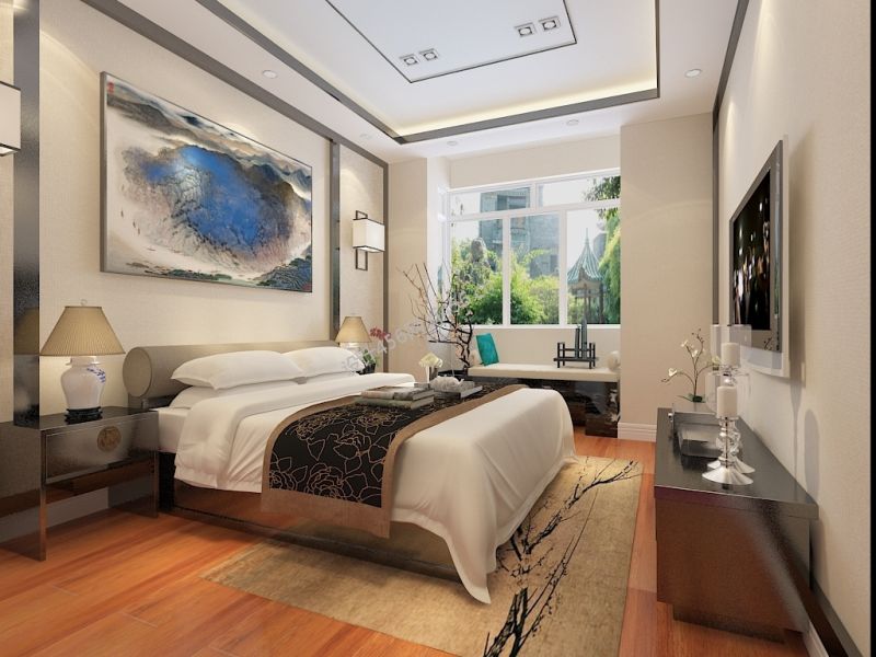 111㎡三居室新中式风格卧室吊顶装修效果图