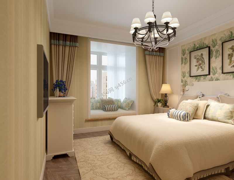 118平三居室田园风格卧室装修效果图