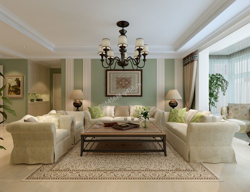118平三居室田园风格客厅装修效果图