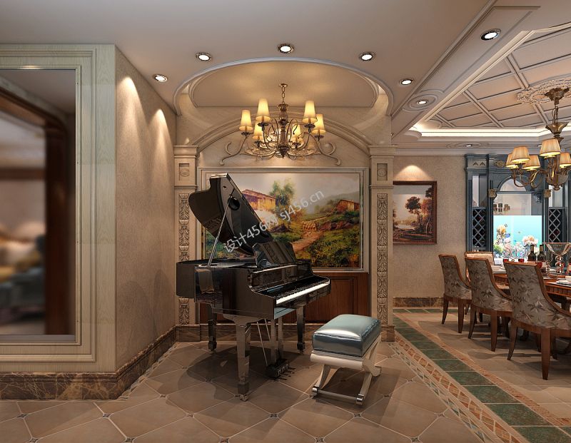 富力尚悦居196平四居室美式风格装修案例风效果图