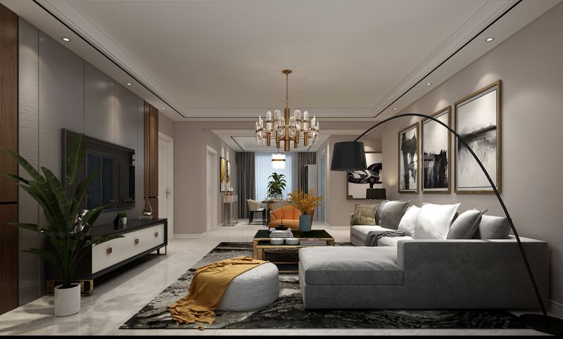 富力城龙栖谷130平米三居室现代轻奢装修案例