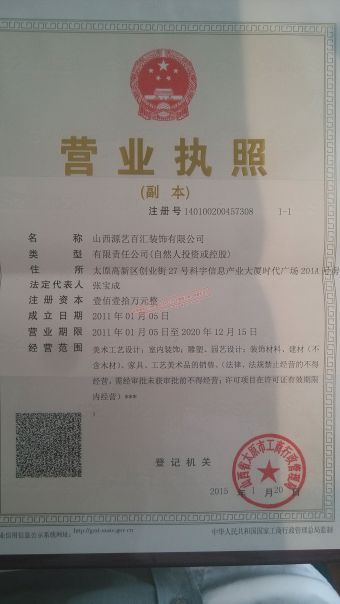 山西源艺百汇装饰有限公司成立于2002年,注册资金110万元,是太原市建筑装饰协会理事单位。公司位于太原市高新开发区,下设行政部、财务部、设计部、项目管理部、网络资源部、电子营销部、客服部七大职能部门,公司历经十多年的发展,坚持以现在亲和、时尚的定位塑造国际化的品牌形象,坚持专业化、规模化、品牌化、产业化的经营运作,在家居装饰行业树立了绝对领先优势,近几年连续获得“中国行业龙头品牌”、“中国用户满意品牌”、“中国最具影响力家居环境设计品牌”、“全国住宅装饰装修行业AAA级诚信企业”等多项荣誉。 公司至成立以来,以优秀的服务和过硬的施工质量,使公司不断发展壮大。在运城、临汾、河津相继成立了分公司,公司现有员工320余名,现有设计总监1名、副总监4名,经验丰富、创意独特的高端设计师20人、主任设计师30人、副主任设计师20人,金牌施工队10支,标兵施工队50支,施工及管理经验丰富的项目经理50人,目前已为12500多位业主提供了专业的装修装饰服务。 为适应市场潮流,公司不断推出各种优惠套餐模式,公司3500平米的材料展厅,80余种材料品牌及3200余种材料型号供您一站式选材配送。源艺百汇装饰在未来将一如既往地以高品质的设计、高质量的施工、高性价比品牌主材配送,全方位的服务满足最广大消费者的消费需求,为打造全国精装第一品牌的目标持续努力,将本着专业于心、专注于行、一站式服务的原则可持续发展。