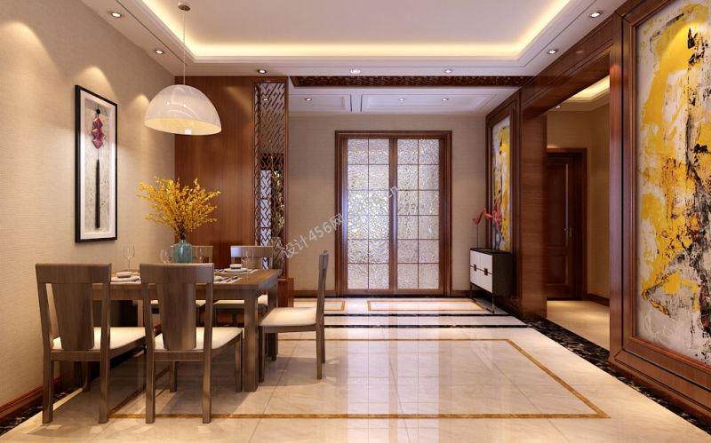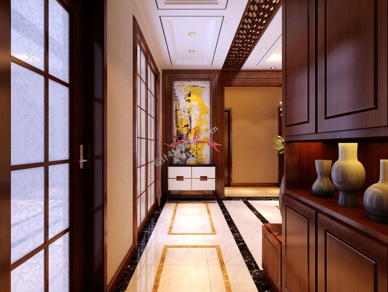 2020雅致新中式别墅效果图 玄关鞋柜设计图