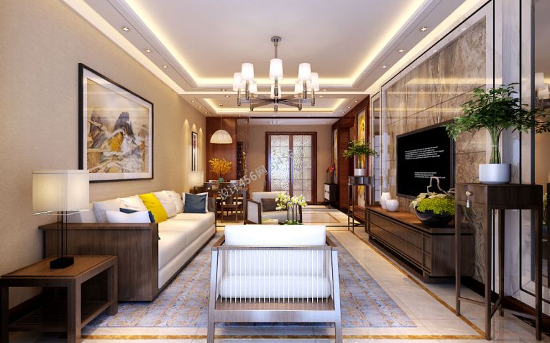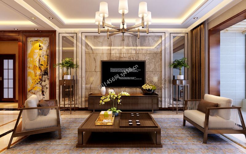 2020新中式客厅装饰图片 大理石电视背景墙