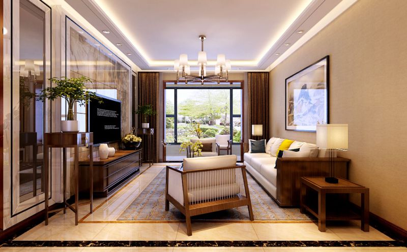 2020新中式客厅设计效果图 2020电视背景墙设计效果