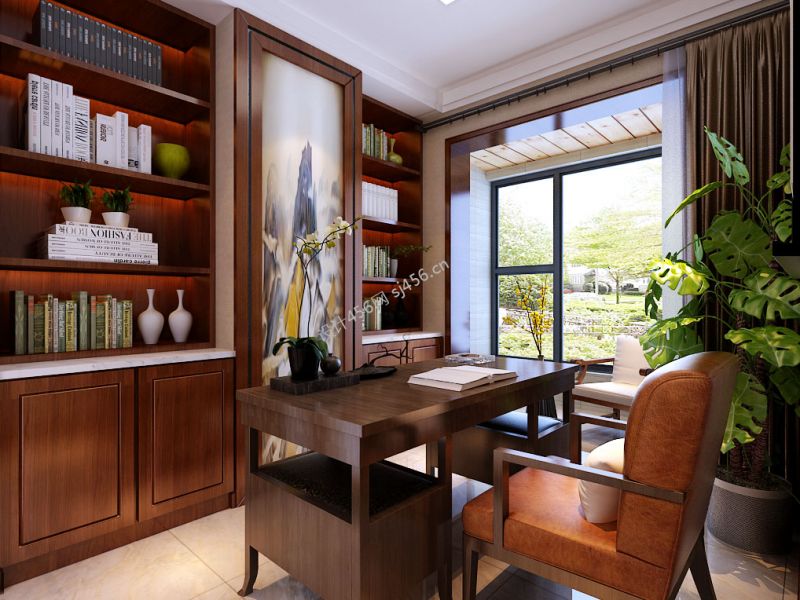 新中式书房布置装修效果图片