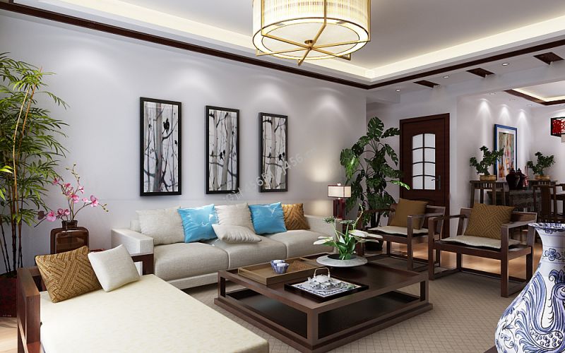 【朗华装饰】公园美地 新中式装修案例风效果图