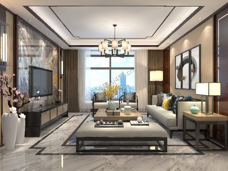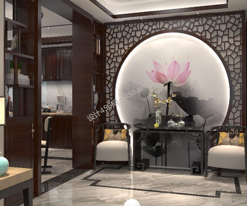 2020新中式别墅设计效果图 别墅背景墙设计效果图