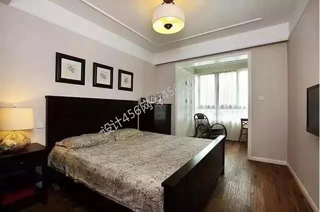 美式简约卧室装修效果图 2020卧室实木床头柜效果图