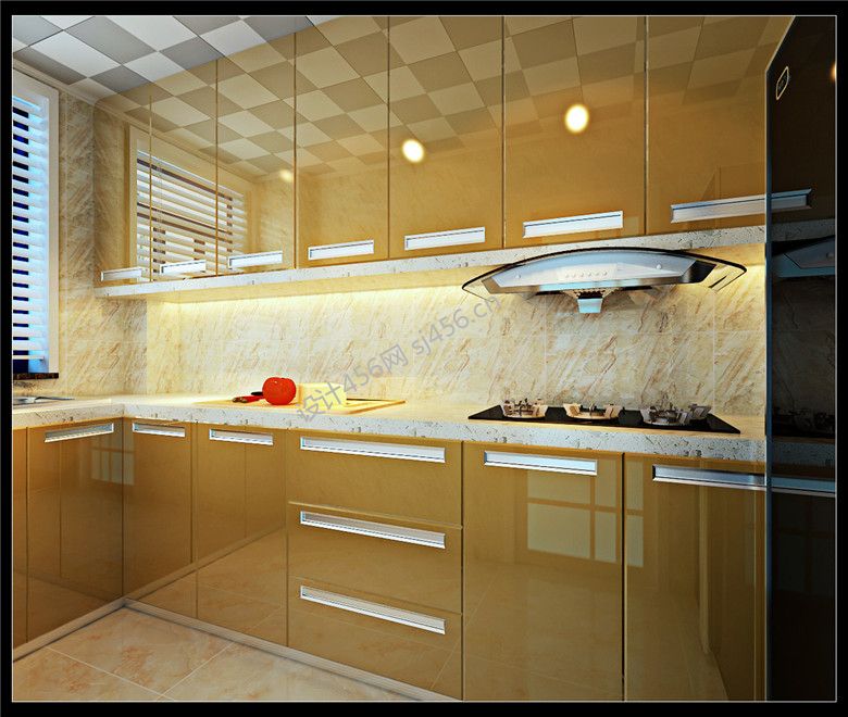 2020简欧厨房效果图 黄色橱柜装修效果图片