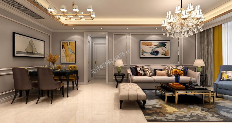 红星天悦119平三居室美式风格装修案例风效果图