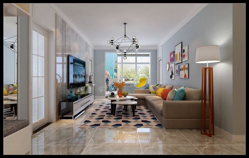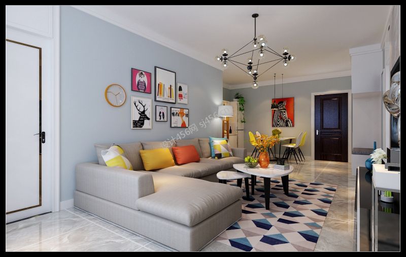 120㎡现代简约三居客厅沙发照片墙装修效果图
