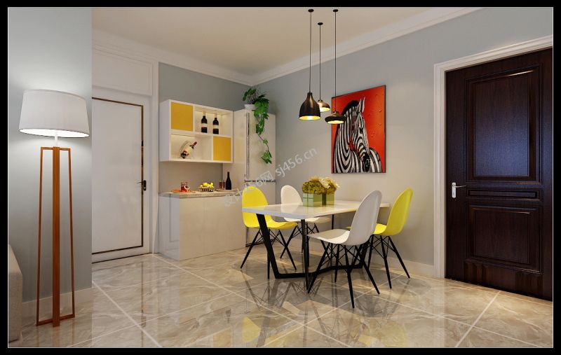 120㎡现代简约三居餐厅墙面挂画装修效果图