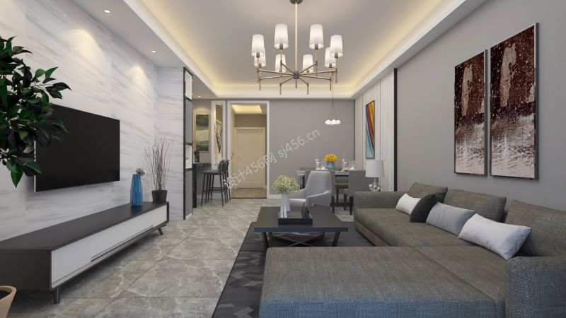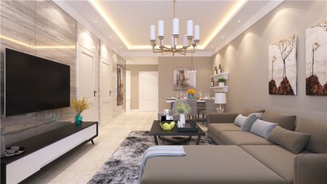 107平文兴苑现代风格新房客厅灰色沙发装潢效果图