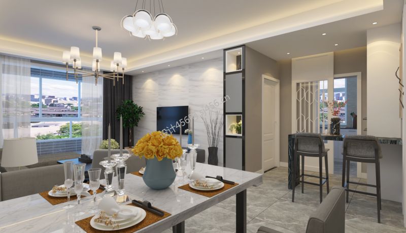东升嘉园105平米现代简约风格装修旧房改造案例风效果图