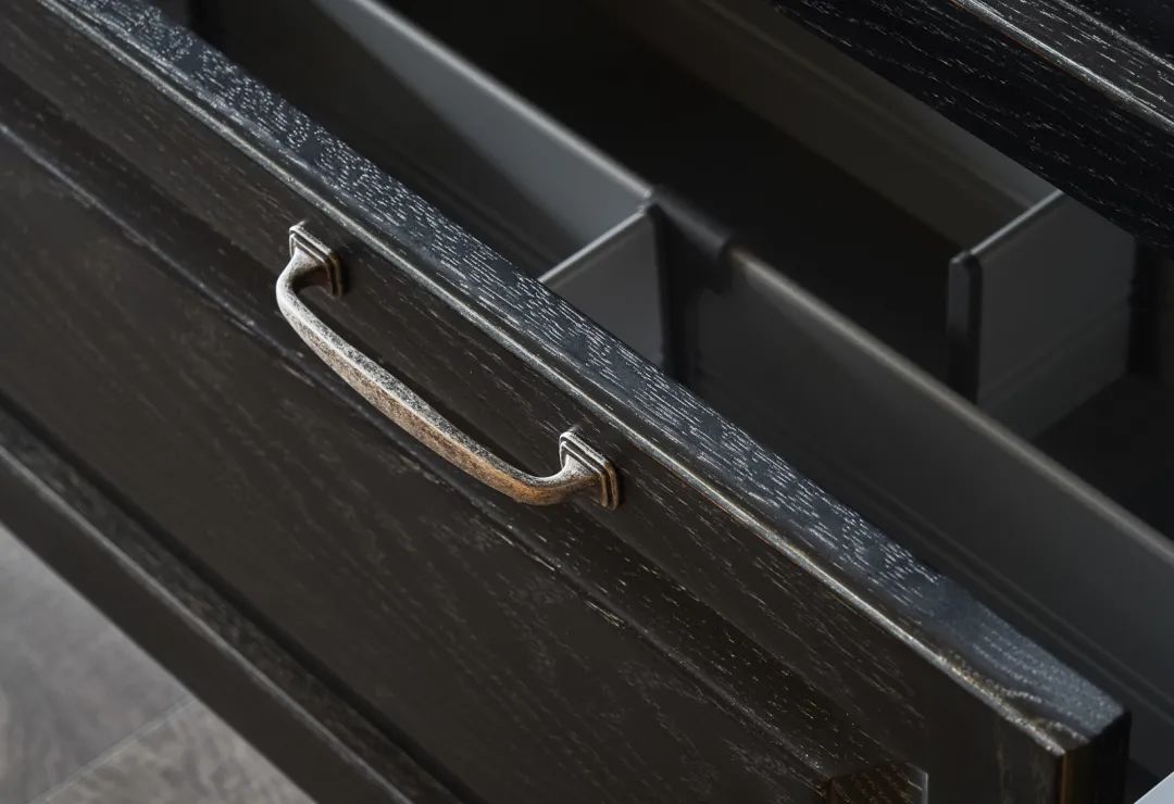▲书房以黑色的推拉门设计,结合黑色的百叶帘窗帘,整体给人以端庄的稳重高级感。