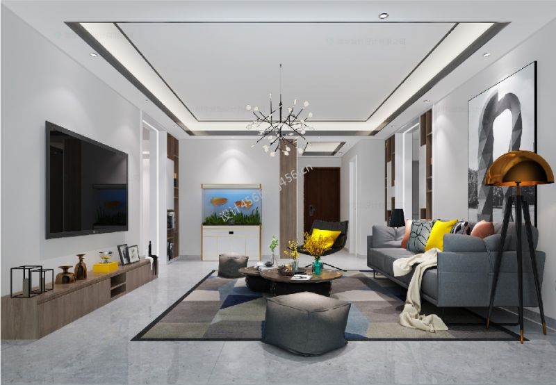 恒大城130㎡三居室现代风格装修案例风效果图