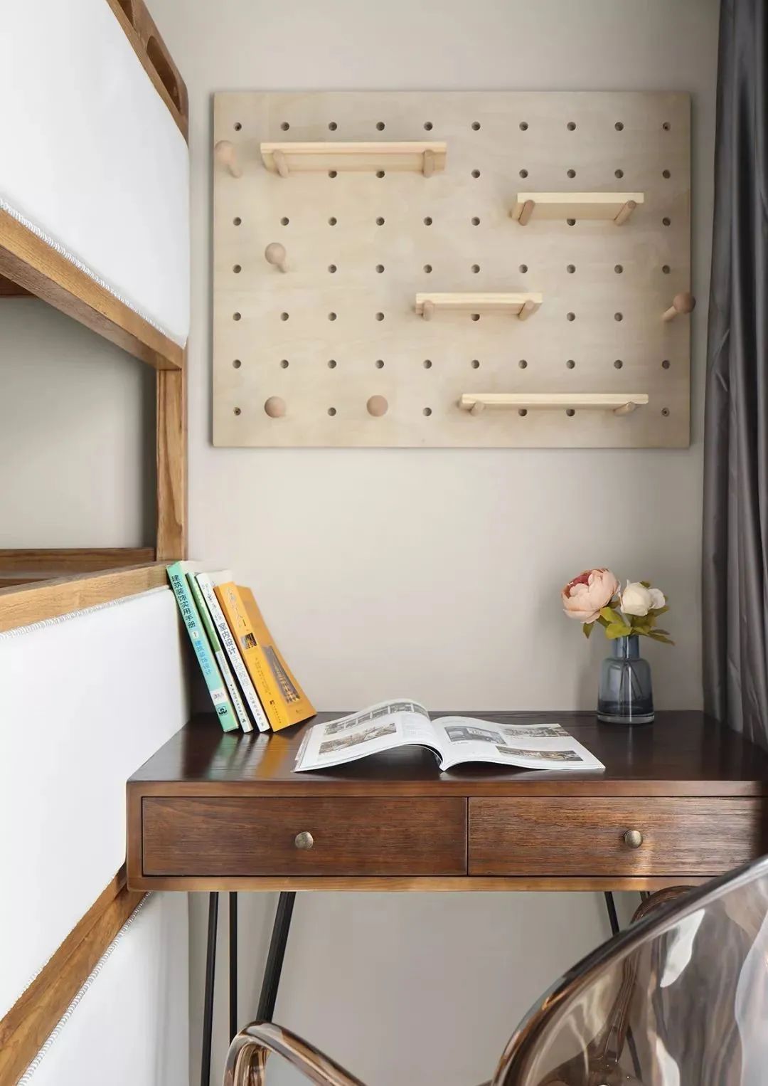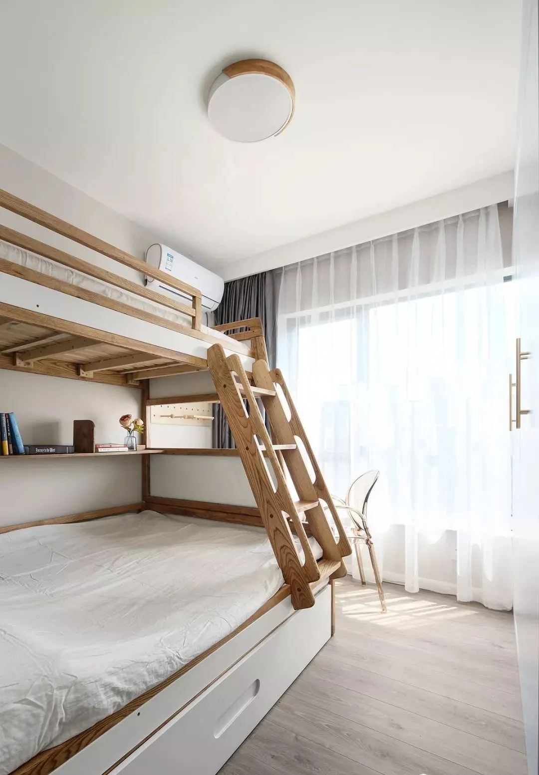 ▲儿童房,采用了上下铺设计,定制了整面墙的收纳柜,靠窗设置了书桌,大大提高了空间利用率。