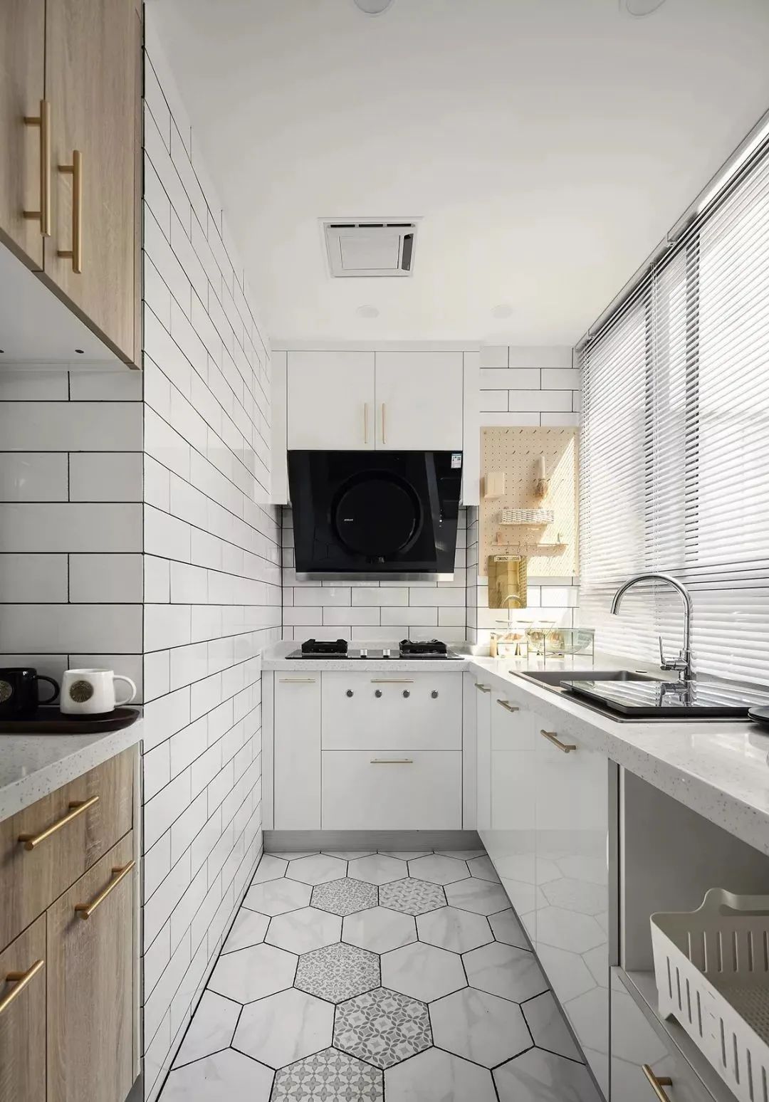 ▲半开放式厨房,L型橱柜布局,充足的收纳+操作空间。