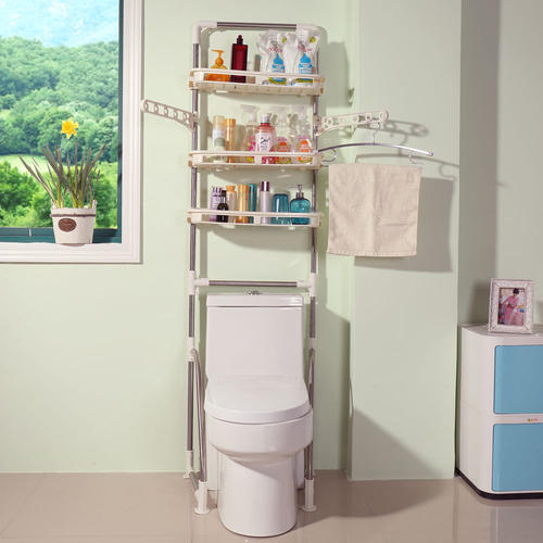 卫生间当初没有做好收纳的话,后期也可以考虑一些收纳架。比如马桶上方的空间可以用移动置物架加以利用,淋浴区的转角处可以用三角收纳架。洗漱台这里可以安装吹风机收纳架,拿取吹风机会方便点,还有牙刷牙杯的收纳等。
