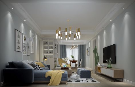 恒大山水城136㎡三居室北欧风格装修案例风效果图