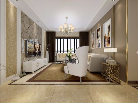 138㎡三居室现代轻奢客厅背景墙装修效果图
