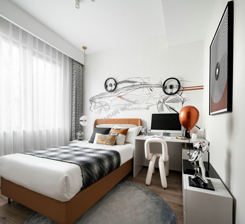 138㎡三居室现代轻奢卧室飘窗装修效果图