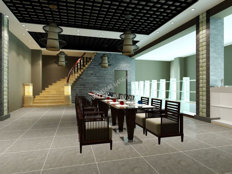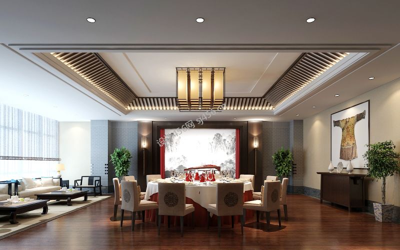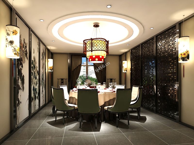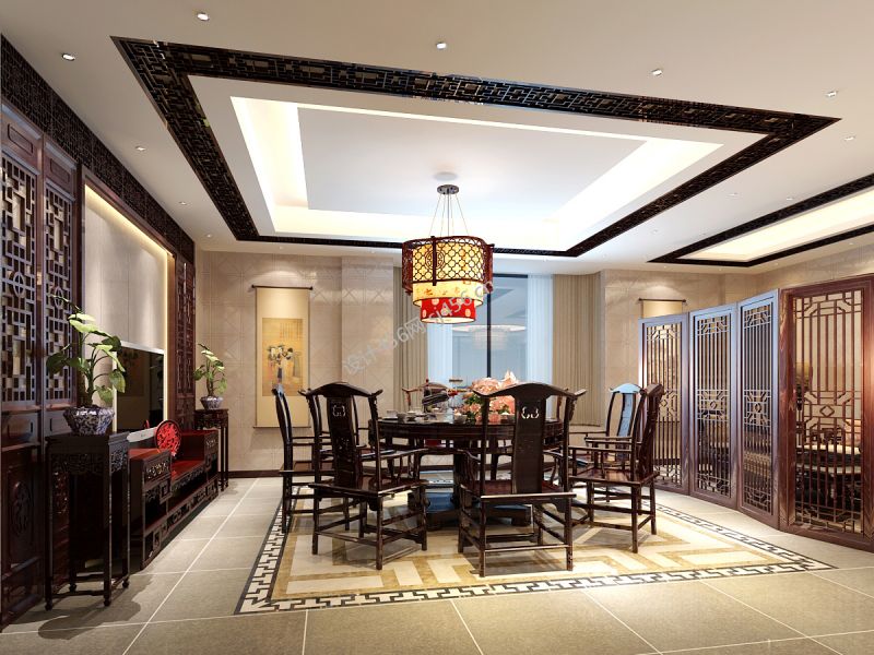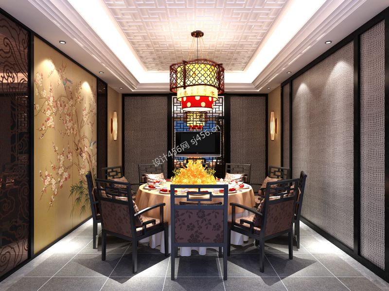 中式火锅店吊顶装饰设计效果图