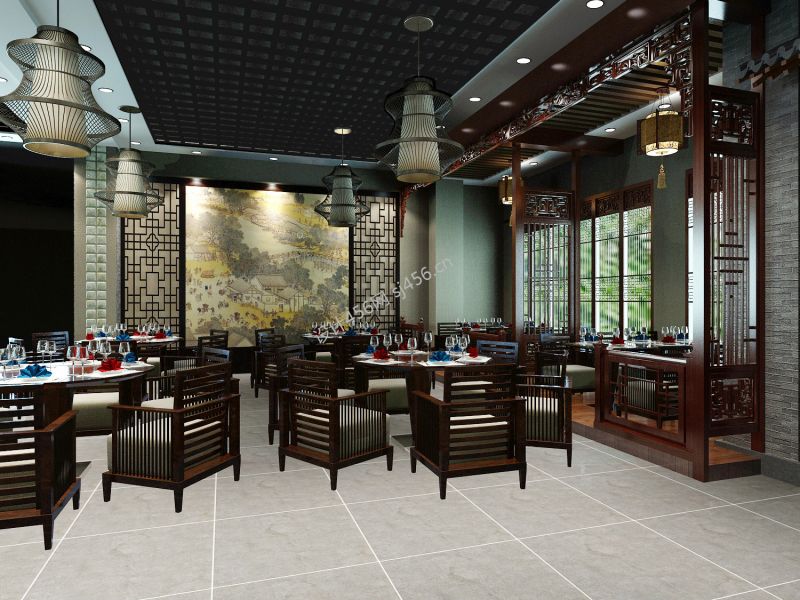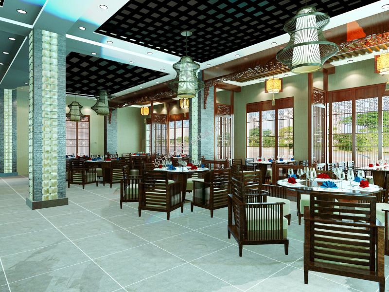 中式火锅店吊顶装饰装修效果图