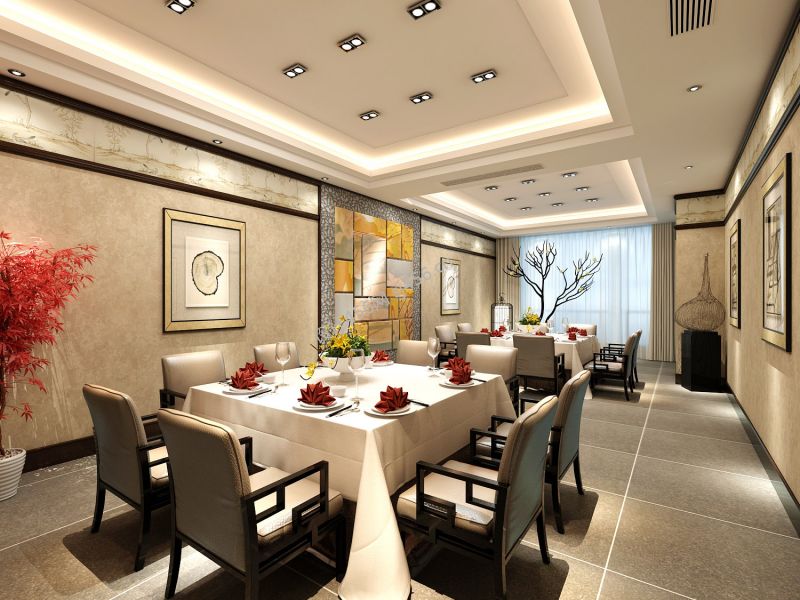 现代中式餐厅石膏板吊顶设计装修效果图片