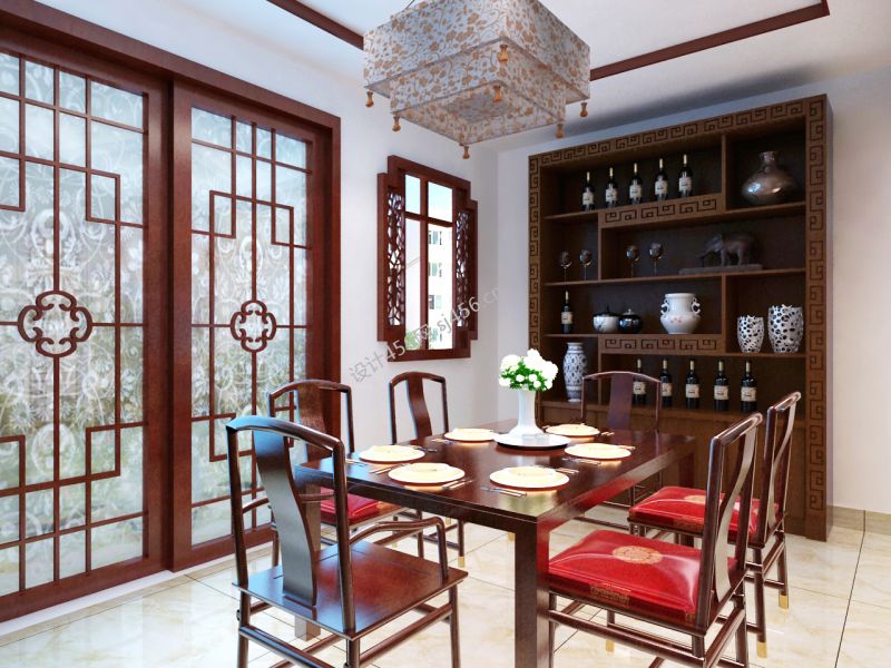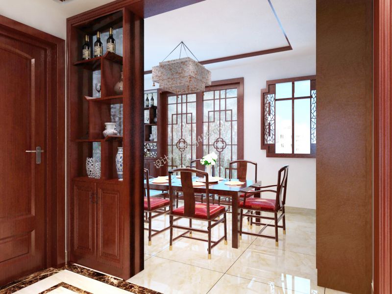 现代中式餐厅效果图 2020餐厅酒柜效果图