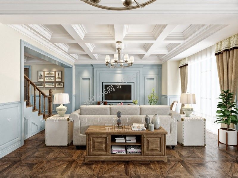 潍坊元筑设计 蔷薇溪谷280平轻美式装修案例